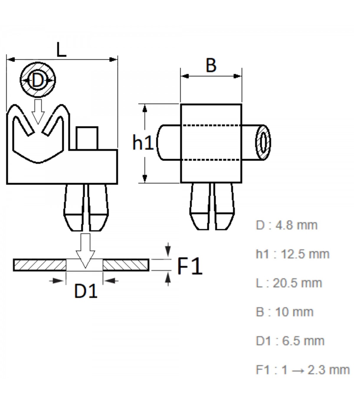 Clip for fixing brake pipes or tubes Ø 4.8mm - Ref 7703079034